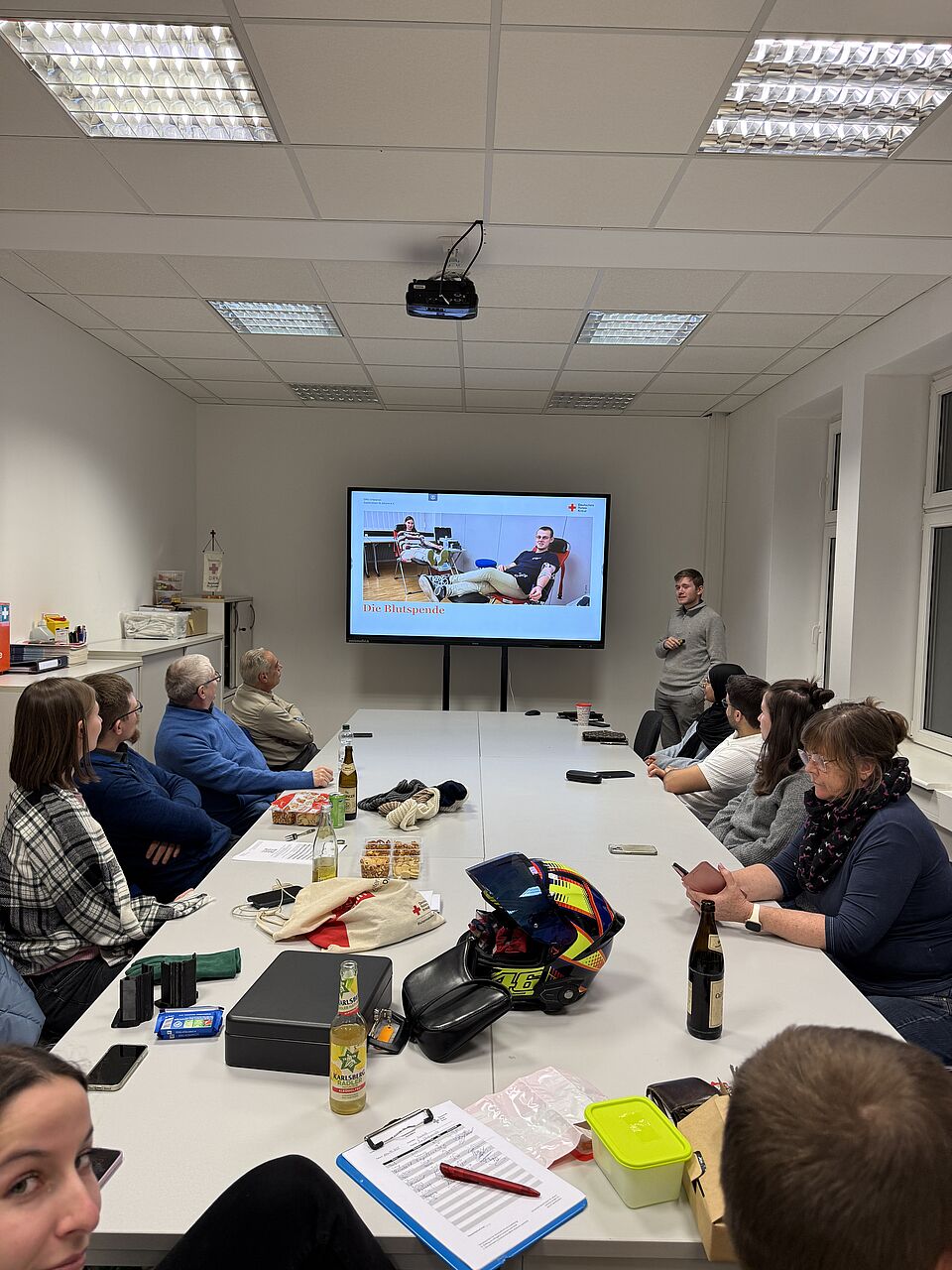 Gestern stand das Thema "Blutspende" auf dem Programm. Unser Blutspendebeauftragter Leo erklärte den 15 anwesenden Helferinnen und Helfer zunächst die Voraussetzungen für Spender, den Ablauf, die Aufbereitung der Präparate und den verschiedenen Verwendungen. Zum Abschluss ging er noch auf unsere Ortsvereinseigene Spende ein.